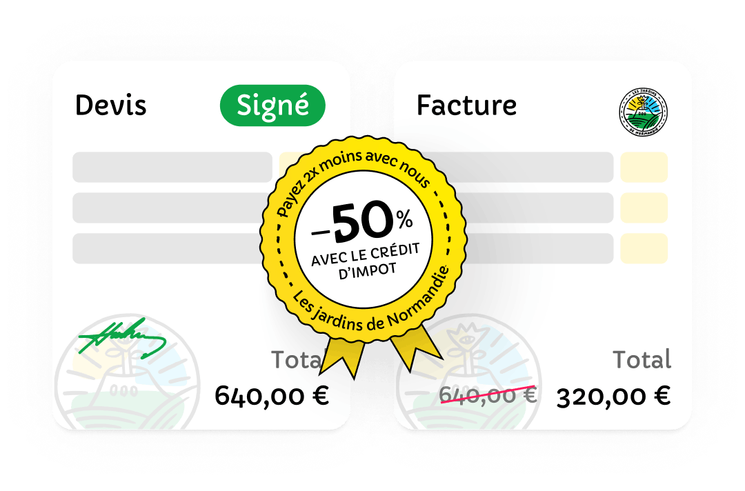 Mes prestations ouvrent droit à un crédit d’impôt de 50 % pour entretenir votre jardin à moindre coût.